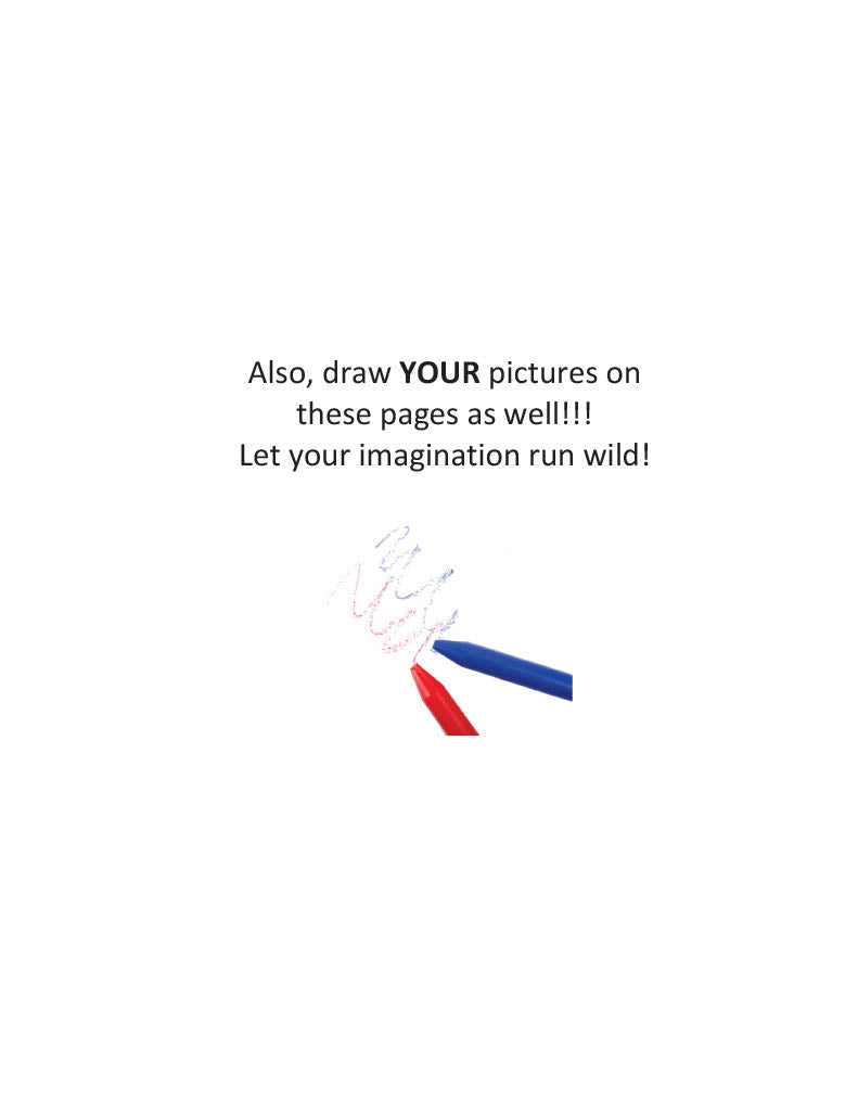 These books present a brand-new publication style for the reader/recipient and the parent or giver. They contain coloring pages in the back of the book and a page for each coloring page that allows the recipient the opportunity to create their own image.